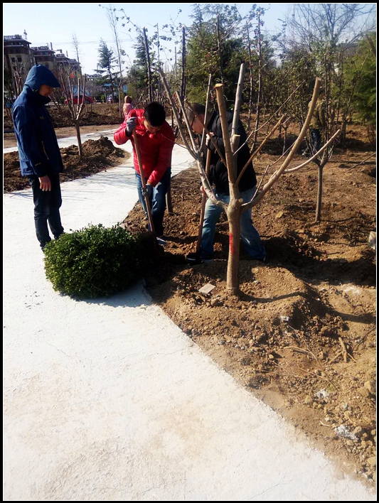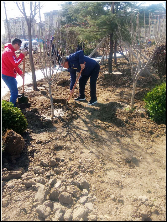 2018年4月7日,在十里庄园绿化区中泰置业全体职工集体举办了义务植树活动,透着习习凉意的春风中,大家干劲十足,两三人一组迅速的完成了植树任务,为十里庄园增添了色彩。