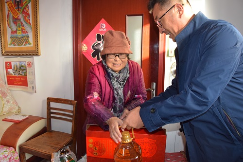2018年12月4日,李总为四个贫困户家庭送去了食用油、牛奶、水果等礼品,并面对面进行交流,了解身体状况和生活中的困难,鼓励他们树立信心,愉快生活,并表示今后还会继续给予生活上的关心和帮助,希望他们早日脱贫致富。
