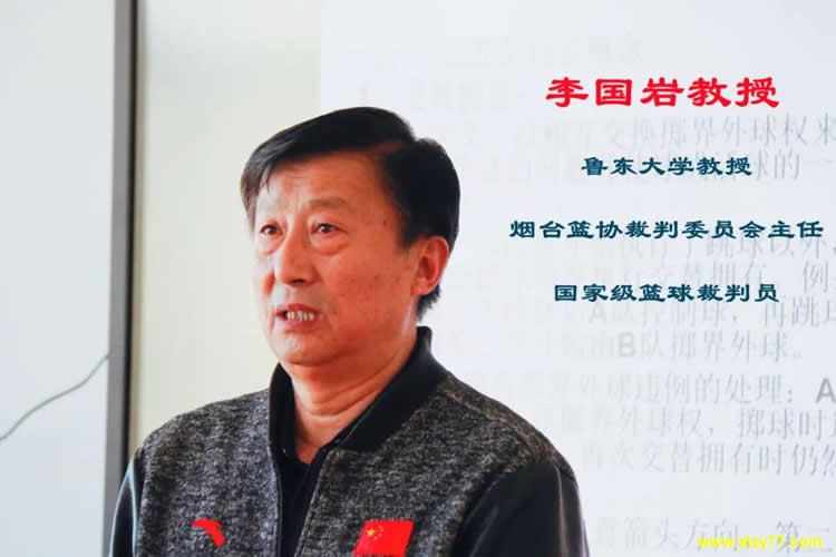 本次培训班特邀鲁东大学教授、烟台篮协裁判委员会主任、国家级篮球裁判员李国岩老师为大家授课。